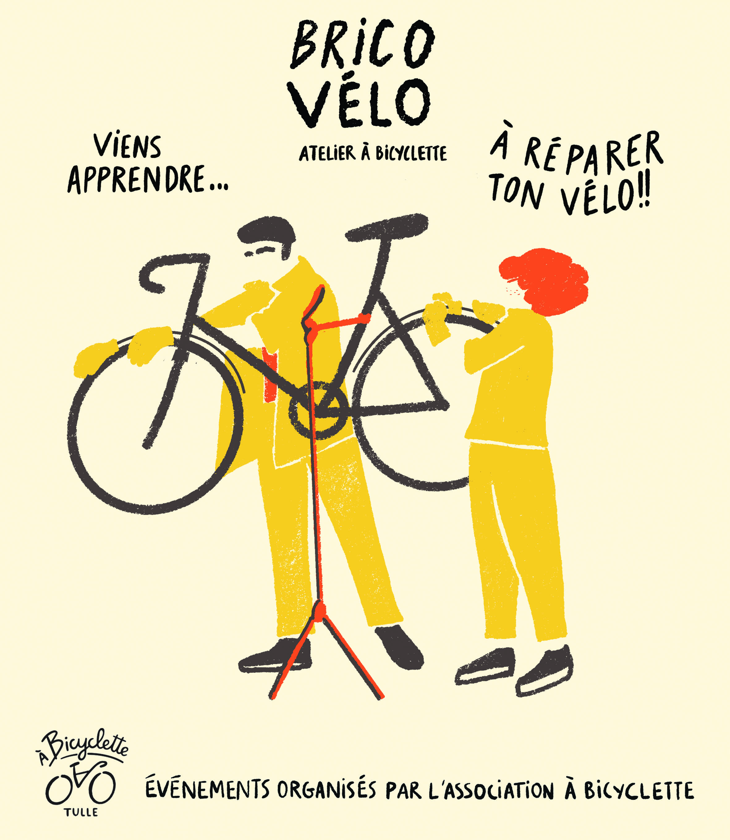 Illustration, poster and logo for bike workshop of Tulle ( France) À Bicyclette.